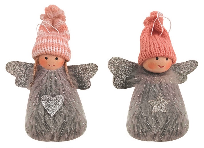 Tento nežný anjel v kombinácii šedej a ružovej farby je elegantnou a vkusnou dekoráciou, ktorá ozvláštni vašu vianočnú výzdobu jemnosťou a pokojnou atmosférou. Jeho decentný vzhľad sa hodí do moderne ladených interiérov aj romantických vianočných aranžmánov. Skvele vynikne na stromčeku, vetvičke alebo ako závesný prvok na okne.