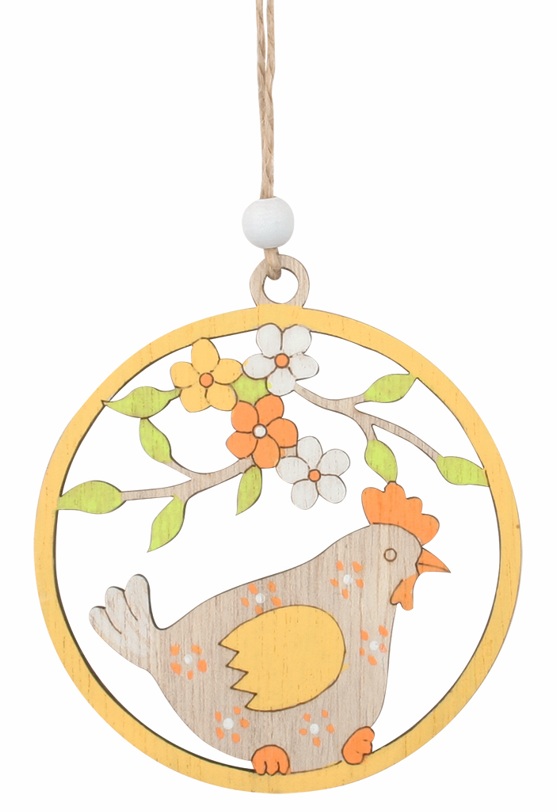 Dekorácia drevená Sliepka v žltom kruhu 9 x 9 x 0,5 cm na zavesenie