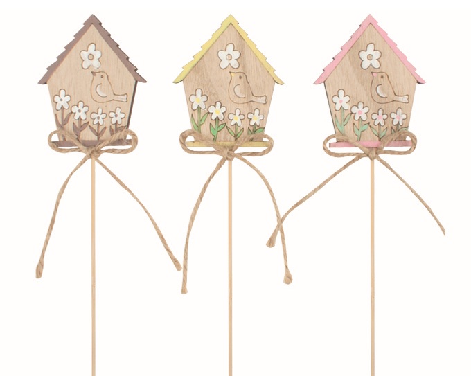 Domček s vtákom drevený 5 x 6 x 0,5 cm + špajle