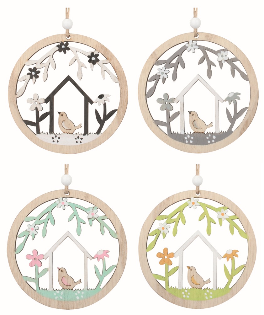 Jarná dekorácia Vták v kruhu z dreva10 x 10 x 0,5 cm na zavesenie
