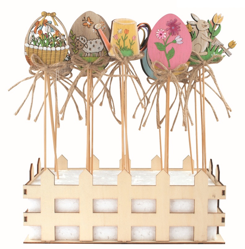 Jarné zápichy na špajli drevené MIX motívov, 20 ks