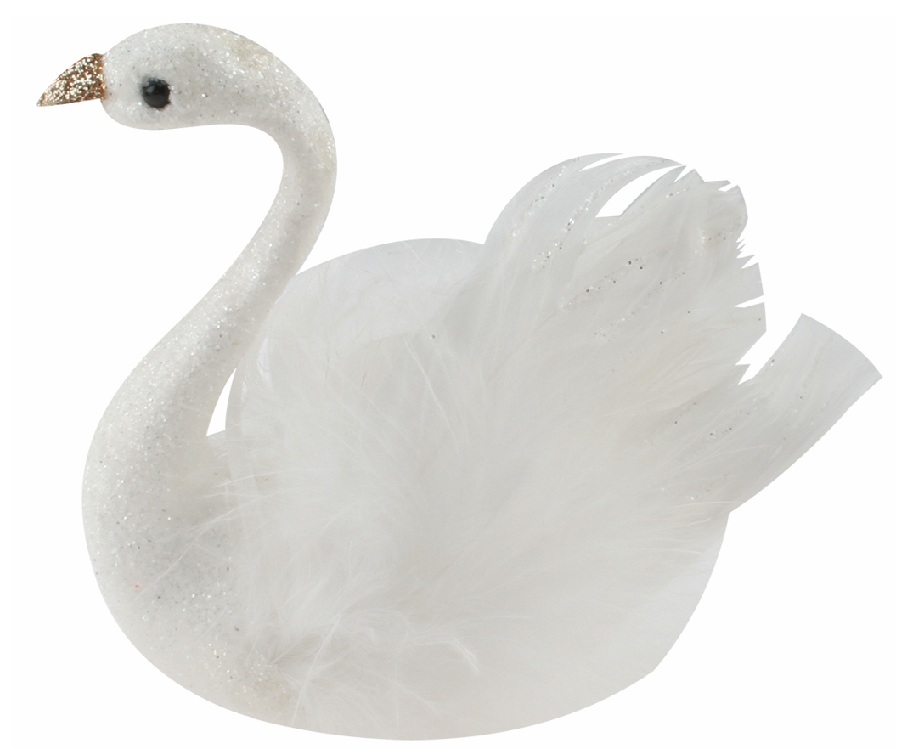 Labuť s glitrami na klipe 10 x 9,5 x 5 cm