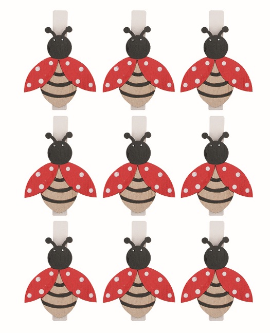 Lienka drevená 3 x 3,5 x 0,3 cm na kolíčku, 6 ks v sáčku