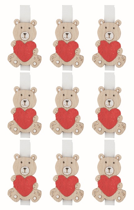 Drevené medvedíky so srdiečkom sú vďaka kolíčku ideálnou drobnou dekoráciou vhodnou na kreatívne tvorenie, zdobenie darčekov, pohľadníc alebo dekoráciu izieb. Kolíček umožňuje jednoduché pripevnenie na papier, látku alebo iné povrchy, čo je ideálne na tvorenie s deťmi aj dospelými.