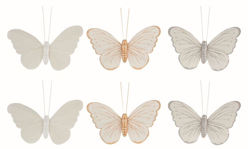 Motýle s glitrami na klipe 9,5 x 8 x 2 cm, 6 ks v sáčku