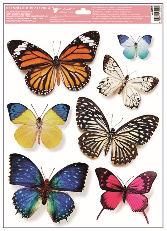 Motív motýľov v rôznych tvaroch a farbách pôsobí ľahko a vzdušne a krásne vynikne na oknách, vitrínach aj zrkadlách. Ideálna dekorácia pre jarnú a letnú výzdobu interiérov, kde chcete dodať priestoru sviežosť a jemný ligot.