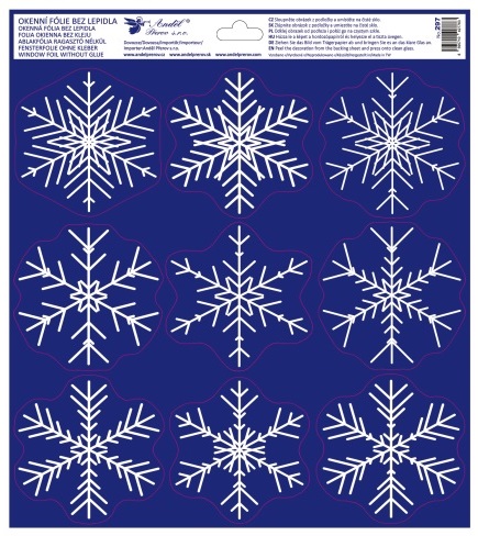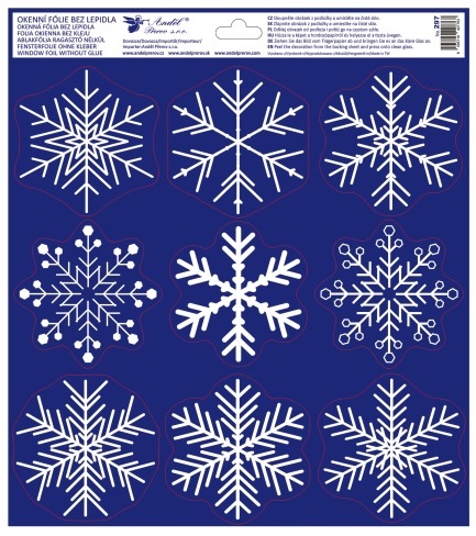 Fólia vynikne na oknách, vitrínach alebo sklenených dverách. Snehové vločky navodia príjemnú zimnú atmosféru doma, v škole aj v kancelárii – bez nutnosti lepenia a upratovania.