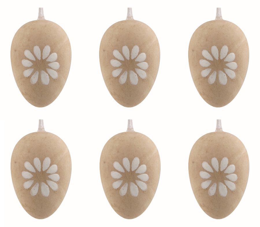 Vajíčka drevené 4 cm na zavesenie, 6 ks v sáčku