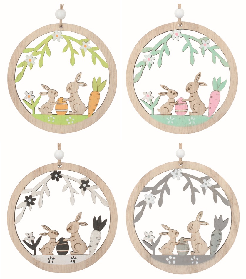 Veľkonočné dekorácie Zajac v kruhu z dreva 10 x 10 x 0,5 cm na zavesenie