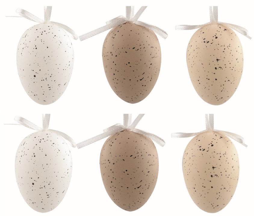 Veľkonočné vajcia plastová Kropenatá svetlo hnedá 6 cm na zavesenie, 6 ks v sáčku