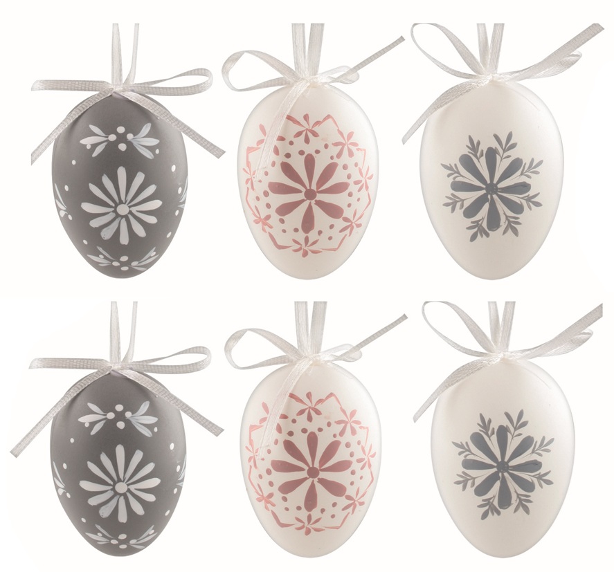 Veľkonočné vajcia plastová Kvety 6 cm na zavesenie, 6 ks v sáčku