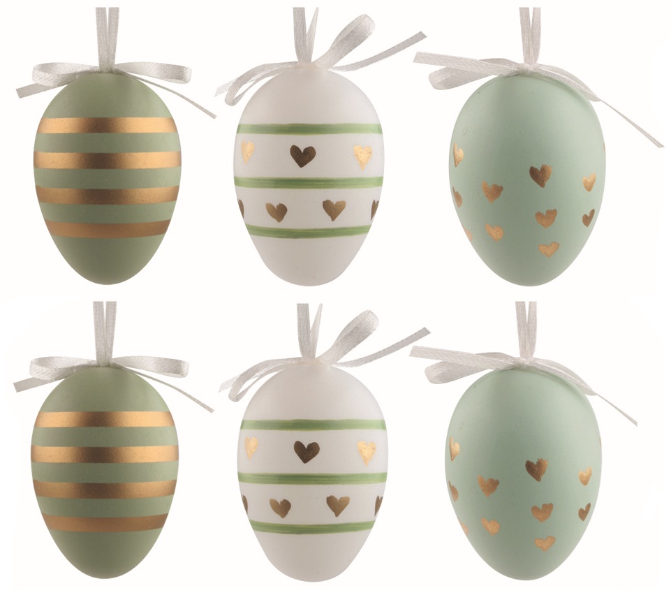Veľkonočné vajcia plastové Zlatá srdiečka 6 cm na zavesenie, 6 ks v sáčku