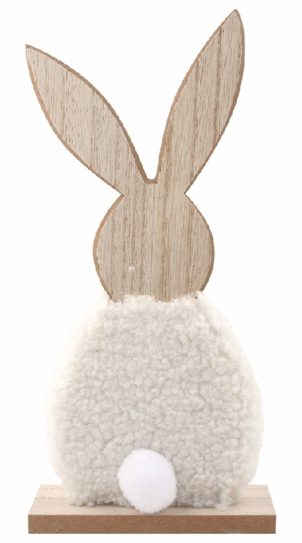 Zajac drevený v bielom kožúšku 11 x 23 x 4 cm na postavenie